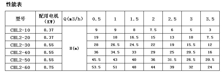 產品介紹 CHL2-10LSWSC輕型不銹鋼臥式多級離心泵是吸取了國內外先進技術而設計制造的非自吸臥式多級離心泵,分為圓筒式與節段式兩種,采用臥式電機和快裝式機械密封,更換非常方便。泵的過流部分均采用不銹鋼(304)材料制成,可適用于輕度腐蝕性介質。該產品可替代國外CH等同類產品。產品投放市場后,以其高效節能、質量可靠、使用范圍廣等特點,深受廣大用戶的喜愛,產品廣泛應用●空調系統 ●冷卻系統 ●工業清洗 ●水處理(水的凈化) ●水產養殖 ●施肥/計量系統 ●環境應用 ●(其他)許多專門特定用途。 CHL2-10LSWSC輕型不銹鋼臥式多級離心泵特征 1、介質溫度:-15℃~+110℃。