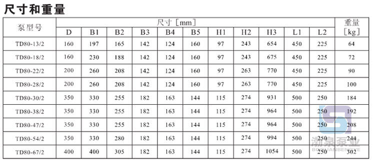 產品介紹 TD80-67/2 立式離心泵采用電機與泵可分離式結構,泵部分設計為可拉出形式。所有的該類產品都配有標準電機和機械密封。電機為全封閉、風冷式標準電機。其主要尺寸符合JB/T8680標準。 產品泵體相當于一段管路。在泵進行維修時,可以用盲法蘭將泵體封堵,從而不影響系統的正常運行。 產品的聯接法蘭尺寸符合GB/T17241.6或IS07005-2/DIN2501標準中PN16時的有關規定。 產品的進出口直徑符合有關標準尺寸。 產品的泵頭是聯接電機和泵的裝置。其與泵體之間的密封件采用“〇”形圈。 TD80-67/2 立式離心泵配有標準電機和機械密封。此類管道泵產品的結構與相近類型產品相比,更不易受到泵送液體中雜質的影響。 產品設計為頂部可拉出的拆裝形式,其可以在不影響管路系統的情況下對泵進行維護。 應用 產品適宜在清潔、稀薄、非侵蝕、非易爆易燃,且不含有任何可能對泵造成機械或化學損害的固體顆粒和纖維的液體中使用。具體對液體要求及應用如下;而在液體粘稠或密度較大情況下使用時會造成泵特性曲線的下降和能耗的增加。 液體溫度:-15℃~110℃ 系統最高壓力:常規型為PN12巴;特殊型為PN16巴。 TD80-67/2 立式離心泵產品在用于輸送水時,其可以用于生活用水、工業用水、冷卻系統用水和區域供熱系統的冷、熱用水。TD離心泵產品可以在以下位置使用: ·主循環泵 ·混合環路中的泵 ·鍋爐混流泵 ·燃氣冷凍機泵 ·部分流量過濾器泵 ·定壓系統用泵 ·生活熱水循環 TD80-67/2 立式離心泵產品用于工業方面。如在化工、制藥、食品加工等行業。可以用于: ·原料的輸送 ·系統增壓泵 ·混合環路循環泵 ![]() ![]() 因產品生產批次、型號不同,產品圖片及安裝尺寸僅供參考,詳情可聯系我們的銷售人員了解更多TD80-67/2 立式離心泵相關信息!