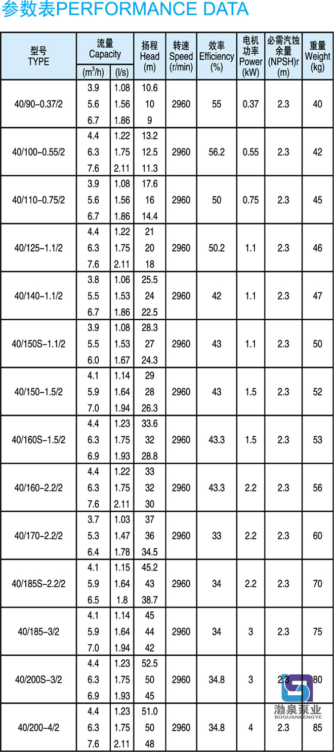 產品介紹 KQL40/150-1.5/2 立式水處理循環泵供輸送不含固體顆粒的清水及物理化學性質類似于水的液體之用。同時根據使用溫度、介質等不同在ISG型管道離心泵基礎上派出適用熱水、高溫、腐蝕性化工泵、油泵。該產品具有同效節能、噪音低、性能穩定等特點。 用途: KQL40/150-1.5/2 立式水處理循環泵用于空調、采暖、衛生用水、水處理冷卻冷凍系統、液體循環和供水、增壓及灌溉等領域中無腐蝕的冷水和熱水輸送。 工作條件: 轉速:2960r/min,1480r/min或980r/min 流量范圍:1.8~2000m3/h 揚程:≤127m 介質溫度:-10℃~120℃ 環境溫度:最大+40℃;海拔高度小于1000m;相對濕度不超過95% 材質: 泵殼、泵蓋、葉輪:鑄鐵 泵軸:45#鋼鍍鉻或不銹鋼(2Cr13) 機械密封動、靜環:浸銻石墨、碳化硅 結構:結構緊湊的單級泵,適用于現代建筑物。 產品特點: KQL40/150-1.5/2 立式水處理循環泵結構緊湊、合理,泵與電機直接連接,外形美觀,占地面積小效率高,閉式鑄鐵葉輪,葉輪懸臂短,機泵軸完全同心,泵運行平穩、可靠,噪音低壽命長,強制環流沖洗機械密封,免保養、無滲漏。 管道泵選型指南: 例如:KQL80/160-7.5/2 或KQW80/160-7.5 KQL標準立式單級離心泵,KQW標準臥式單級離心泵 80進出口直徑 160葉輪名義直徑 7.5/2電機功率/電機極數 ![]() ![]() 因產品生產批次、型號不同,產品圖片及安裝尺寸僅供參考,詳情可聯系我們的銷售人員了解更多KQL40/150-1.5/2 立式水處理循環泵相關信息!