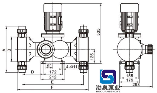 隔膜式計量泵特點 1.操作安全,機械驅動隔膜。 2.密封性好,無泄漏,裝配維修簡單安全。 3.它可以傳輸高粘度介質,腐蝕性液體和危險性的化學品。 4.流量調節能夠調節沖程長度或電機頻率。 5.隔膜為多層復合結構壓制而成,第一層超韌性Teflon耐酸薄膜,第二層EPDM彈性橡膠,第三層3.0mmSUS304支撐鐵芯,第四層采用強化尼龍纖維補,第五層采用EPDM彈性橡膠完全包履,可有效提出升隔膜適用壽命。 應用 GB-S2800/0.3 不銹鋼隔膜式計量泵廣泛應用于石油化工、化工、電力、冶金、采礦、造船、輕工、農業、國防等工業。 因產品生產批次、型號不同,產品圖片及安裝尺寸僅供參考,詳情可聯系我們的銷售人員了解更多GB-S2800/0.3 不銹鋼隔膜式計量泵相關信息!