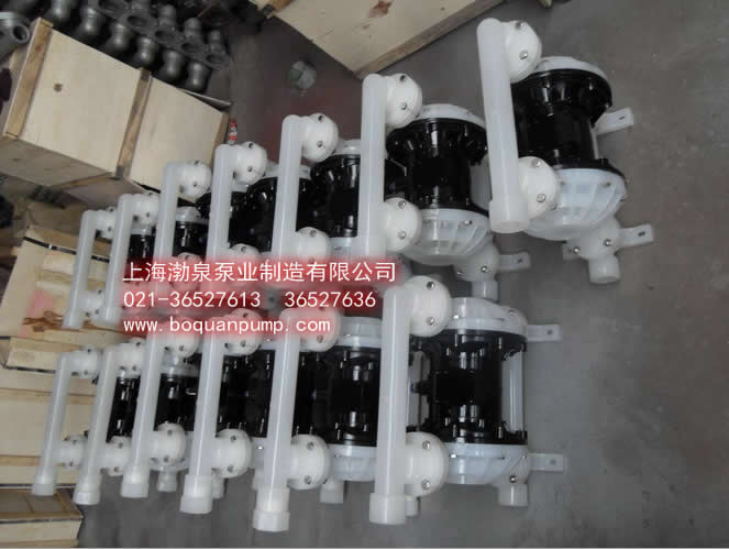 ![]() QBY-25工程塑料氣動隔膜泵產品概述: QBY-25工程塑料氣動隔膜泵采用壓縮空氣為動力源,對于各種腐蝕性液體,帶顆粒的液體,高粘度、易揮發、易燃、劇毒的液體,均能予以抽光吸盡。隔膜泵根據不同液體介質分別采用丁腈橡膠、氯丁橡膠、氟橡膠、聚四氟乙烯隔膜,以滿足不同用戶的需要。 耐腐蝕耐酸堿氣動化工泵主要特點: 1、不需灌引水,吸程高達7m,揚程達50m,出口壓力≥6kgf/cm2; 2、流動寬敞,通過性能好,允許通過最大顆粒直徑達10mm。抽送泥漿、雜質時,對泵磨損甚微; 3、揚程、流量可通過氣閥開度實現無級調節(氣壓調節在1-7kgf/cm2之間); 4、該泵無旋轉部件,沒有軸封,隔膜將抽送的介質與泵的運動部件、工作介質完全隔開,所輸送的介質不會向外泄漏。所以抽送有毒、易發揮或腐蝕性介質時,不會造成環境污染; 5、不必用電,在易燃、易爆場所使用安全可靠; 6、可以浸沒在介質中工作; 7、作用方便、工作可靠、開停只需簡單地打開和關閉氣體閥門,即使由于意外情況而長時間無介質運行或突然停機,泵也不會因此而損壞,不旦超負荷,泵會自動地停機,具有自我保護性能,當負荷恢復正常后,又有自動啟動運行; 8、結構簡單、易損件少,該泵結構簡單,安裝、維修方便,泵輸送的介質不會接觸到配氣閥,聯桿等運動部件,不象其他類型的泵因轉子、活塞、齒輪、葉片等部件的磨損而使性能逐步下降; 9、可輸送較粘的液體(粘度在1萬厘泊以下); 10、本泵無須用油潤滑,即使空轉,對泵也無任何影響,這是該泵一大特點。 主要用途: 1、泵吸花生醬、泡菜、土豆泥、小紅腸、果醬蘋果漿、巧克力等。 2、泵吸油漆、樹膠、顏料。 3、粘合劑和膠水、全部種類可用泵吸取。 4、各種瓦、瓷、磚器及陶器釉漿。 5、油井鉆好后,用泵吸沉積物及灌漿。 6、泵吸各種乳劑和填料。 7、泵吸各種污水。 8、用泵為油輪,駁船清倉吸取倉內污水。 9、啤酒花及發酵粉稀漿、糖漿、糖密。 10、泵吸礦井、坑道、隧道、選礦、礦渣中的積水。泵吸水泥灌漿及灰漿。 11、各種橡膠漿。 12、各種磨料、腐蝕劑、石油及泥漿、清洗油垢及一般容器。 13、各種劇毒、易燃、易揮發液體。 14、各種強酸、強堿、強腐蝕液體。 15、各種高溫液體最高可耐150℃。 材質:鑄鐵、鋁合金、不銹鋼、工程塑料、 隔膜材質:丁晴膠、F46 型號:QBY-10、QBY-15、QBY-25、QBY-40、QBY-50、QBY-65、QBY-80、QBY-100。16、作為各種固液體分離設備的前級送壓裝置。 QBY-25工程塑料氣動隔膜泵 耐腐蝕耐酸堿氣動化工泵性能參數: