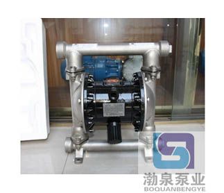氣動隔膜泵是一種新型輸送機械,采用壓縮空氣為動力源,對于各種腐蝕性液體,帶顆粒的液體,高粘度、易揮發、易燃、劇毒的液體,均能予以抽光吸盡。這種泵的主要特點氣動隔膜泵,不銹鋼氣動隔膜泵,QBY氣動隔膜泵。 氣動隔膜泵故障排除 1.拆卸氣動隔膜泵之前,將左右邊的氣室及液室分別標上記號以助于后續的再組裝動作。 2.使用扳手將連接出口管與液室的小卡箍松開,拆除出口管即可看到閥球和閥座,拿出球和座并檢查泵的其他備件有磨損、化學腐蝕、裂痕等現象。 3.使用扳手將連接進口管與液室的小卡箍松開,拆除出口管即可看到閥球和閥座,拿出球和座并檢查泵的其他備件有磨損、化學腐蝕、裂痕等現象。 4.使用扳手將液室和泵的中間體分開,拆除液室即可看到膜片及膜片夾板。 5.使用工具或扳手固定膜片外夾板左右邊緣,將隔膜裝置與中間體分開。然后順時針旋轉松開隔膜裝置。移出膜片外夾板后,將軸從中間體取出。 6.使用夾鉗(加墊木板)將軸與膜片裝置分開,檢查軸、夾板、膜片是否損壞和腐蝕現象。 7.安裝從步驟6到步驟1 氣動隔膜泵有動作,但是流量小或完全沒有液體流出: 1.檢查泵的氣穴現象,降低泵的速度讓液體進入液室。 2.檢查閥球是否卡住。如果操作液體與泵的彈性體不相容,彈性體會有膨脹的現象發生。請更換適當材質的彈性體。 3.檢查泵入口的接頭是否完全鎖緊不漏,尤其是入口端閥球附近的卡箍需鎖緊。