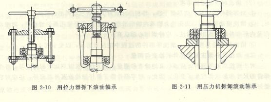 管道泵體及轉子等部分卸下以后,應將其移放到平整寬敞的地方或工作臺上,以便于進行解體。 離心泵的拆卸順序 ②葉輪及泵蓋的拆卸:拆卸葉輪時,用專用扳手卡住葉輪前端的軸頭螺母(又稱葉輪背帽),沿離心系葉輪的旋轉方向旋下螺母,并用雙手將葉輪從泵軸上拉出。 然后,將填料壓蓋的壓緊螺母松開,拆出填料,以免拆下泵蓋時增加滑動阻力。 最后,旋下連接泵蓋與泵體的雙頭螺柱的螺母,沿泵軸方向將泵蓋拉出。如出現銹蝕,可將泵體豎起,泵蓋置于下端并且懸空,用木錘沿四周敲擊泵蓋,將其取下。 離心泵的拆卸順序 ③泵軸的拆卸:要把泵軸拆卸下來,必須先將軸組(包括泵軸、滾動軸承以及防松裝置)從泵體上拆卸下來。為此,須按以下程序進行。 (a)拆下泵軸后端的大螺帽,用拉力器將離心泵的半聯軸器拉下來,并且用通芯螺絲刀或鏨子將平鍵沖下來; (b)拆軸承壓蓋螺栓,并把軸承壓蓋拆除,同時將潤滑油倒出; (c)用手將葉輪端的軸頭螺母擰緊在軸上,并用手錘敲擊螺母,使軸組沿軸向后端退出泵體; (d)拆除防松墊片的鎖緊裝置,用鎖緊扳手拆卸滾動軸承的圓形螺母,并取下防松墊片; (e)用拉力器(如圖2-10所示)或壓力機(如圖2-11所示),將滾動軸承從泵軸上拆卸下來。 ![]() 有時滾動軸承的內環與泵鞋至臺}.j亍過盈量太大,出現難以拆卸的情況。這時,可以丟專燕寫法來進行拆卸,如圖2 12所示。拆卸時,先將滾動筆季芝霉近的軸頸用隔熱的石棉板包好,裝上拉力器,再將蒸t芝妻在軸承內環的跑道上,使內環受熱膨脹,借助于拉土萎.– -把軸承從軸頸上拆卸下來。 ![]() (3)離心泵的拆卸順序應注意的問題 ①機座螺栓處的墊片。是用秀運蔓毛嘉機軸與泵軸的同軸度的,因此同一個機座螺栓處的墊片,應放在一起,回裝時仍裝t-舌乏,這樣,可大大減少回裝過程中的工作量。 ②拆卸中,若泵殼內仍有殘留介質(特別是酸、堿、鹽溶液).可用清水沖洗干凈,以免 對皮膚造成化學燒傷。