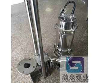 不銹鋼污水泵WQP型適用用于工廠商業嚴重污染廢水的排放、主宅區的污水排污站、城市污水處理廠派水系統、人防系統排水站、自來水廠的給水設備、醫院、賓館的污水排放、市政工程建筑工地、礦山配套附機、農村沼氣池、農田灌溉等行業,輸送帶顆粒的污水,污物,也可用于清水及帶弱腐蝕性介質。 產品特點: 1、不銹鋼污水泵采用雙葉片葉輪結構,大大提高了污物的通過能力 2、機械密封采用新型磨檫副,并長期處入油室內運行; 3、整體結構緊湊、體積小、噪聲小、節能效果顯著,檢修方便,方便用戶更換; 4、自動控制柜可以根據所需液位變化,自動控制泵的超動與停止,不需專人看管,使用極為方便; 5、可根據用戶需要配備安裝方式,它給安裝、維修到來極大的方便,人可不必此為而進入污水坑; 6、能夠在設計范圍內使用,而保證電機不會過載; 7、機械密封采用新型硬質耐腐的鈦化鎢材料,可使泵安全連續運行8000小時以上。