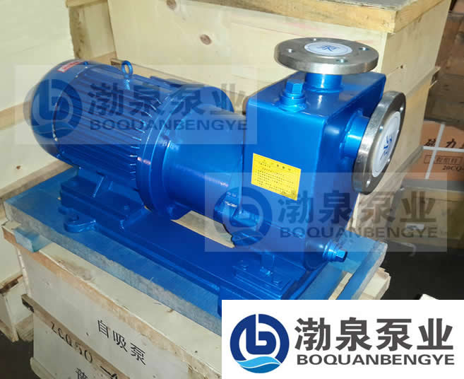 ZCQ50-40-200自吸磁力驅動泵以靜密封取代動密封,使泵的過流部件處于完全密封狀態,徹底解決了其它泵機械密封無法避免的跑、冒、滴、漏的弊病,泵體及過流部件的材料均采用了耐腐蝕的不銹鋼材料制造,既有CQ型磁力驅動泵的功能,又集自吸于一身,只需在泵第一次使用前灌液后,第二次及以后使用則無需灌液,直接開機即可www.yujiamuye.com/zxb/。 在石油、化工、制藥、電子等眾多領域,越來越多的廠家,對其輸送的介質都要求無泄漏的工藝環境,迫切需要選擇理想的泵型,我公司生產的ZCQ系列自吸磁力驅動泵吸收了國內外領先水平的磁力泵生產新技術、新材料、新工藝,成功的解決了目前國內磁力泵的隔離套、葉輪等部件易損壞的技術難題,使其性能更加完美。CQB、IMD、CQ、CQF、ZCQ系列磁力泵經過使用單位長時間的生產性連續運行考驗,越來越多的用戶確信他們所選的是最安全、最可靠的泵型,我們將一如既往的為廣大用戶提供更加優質的服務。  二、用 途 ZCQ50-40-200自吸磁力驅動泵的過流部件采用不銹鋼(304、316、316L)制成,廣泛應用于石油、化工、制藥、電鍍、環保、水處理、國防等部門,是輸送易燃、易爆、有毒和貴重液體的理想設備,是創建無泄漏、無污染文明車間的最佳選擇。適用溫度:-20℃~100℃。 三、防漏設計 以靜密封取代動密封,利用磁力耦合間接驅動,完全消除了滴漏的煩惱,絕不污染使用場地。是化工流程中杜絕跑、冒、滴、漏現象,消除環境污染,創造“無泄漏車間”、“無泄漏工廠”,實現安全、文明生產的理想用泵。 四、操作原理 ZCQ50-40-200自吸磁力驅動泵采用先進的外混式軸向回水泵體結構設計,泵體由吸液室、儲液室、蝸殼、回流孔、氣液分離室等部份組成(結構見示意圖)。泵啟動后,在離心力的作用下,吸水室中的剩余液體與進液管路中的空氣被葉輪攪拌形成氣液混合物,混合物通過蝸殼進入氣液分離室,隨著流速降低,導致氣水分離,空氣由泵出液口排出,液體經回流孔返回泵腔內,經過多次循環,進液管道中的空氣被逐漸排空,使泵腔內形成一定的真空度,低位槽中的液體在大氣壓的作用下流向泵進口,達到自吸的作用,這一系列的自吸過程是泵在剛啟動的1至3分鐘內自動完成,無需人工干預,當液體充滿泵的進液管路與泵腔后泵組即自動進入正常運行狀態。磁力自吸泵的驅動裝置采用主動磁鐵聯軸器直接裝在電機軸上,通過磁力偶合間接驅動轉子組合上的葉輪旋轉,泵腔全部封閉,完全無泄漏。