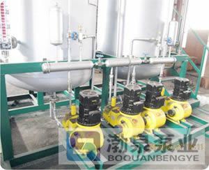 進/出水閥和泵頭的連接螺紋不能使用生料帶纏繞;要確保吸液閥及排液閥內干凈。 泵減速箱是否有足夠的潤滑油并達到油標上限,上限為觀察窗的中線位置;正常工作時也要保證油面處于觀察窗的中線位置;至少每年更換一次潤滑油(渦輪蝸桿油),推薦的型號:MONARCH®EP320,如不能購買到推薦的型號,客戶可選擇尾號為EP320的任何一種渦輪蝸桿油。 出口管路壓力一定要高于出口管路壓力,否則會產生虹吸。 建議安裝安全閥及脈沖阻尼器等。檢查系統連接、安裝與支撐是否正確、牢固,不允許管路的重量作用在泵上,截止閥和止回閥、安全閥、Y型過濾器安裝方向應正確。脈沖阻尼器應當用支撐件固定,管道與泵連接后應復查泵的原找正度,當發現管道連接引起偏差時,應調整管道。 對計量泵進行流量標定,實際使用中由于條件改變,實際流量和銘牌流量不一致是正常的。如果現場要求比較高,可在入口處通過加藥罐單位時間的見少量進行標定,并記錄標定結果,在正式運行時以標定的結果來對計量泵進行百分比設定。 運行試驗:空載啟動泵并檢查電壓、電流及泵的運轉狀態(包括計量泵電機轉速、啟動電流、電機發熱、漏液及計量泵的震動和噪音等),如果發生異常情況,應及時處理。 在額定負載下進行負載試驗,觀測計量泵的運轉情況,觀測并記錄壓力、轉速、噪音及震動情況,有無泄漏等,如果發現異常情況,應及時處理。 上海渤泉泵業始終堅持“以世界高新技術為先導,國際先進水平為目標,向科技求發展,向質量求生存,向信譽求市場,向管理求效益”的發展方針。渤泉泵業誠懇邀請八方商客蒞臨參觀指導,共創共贏!